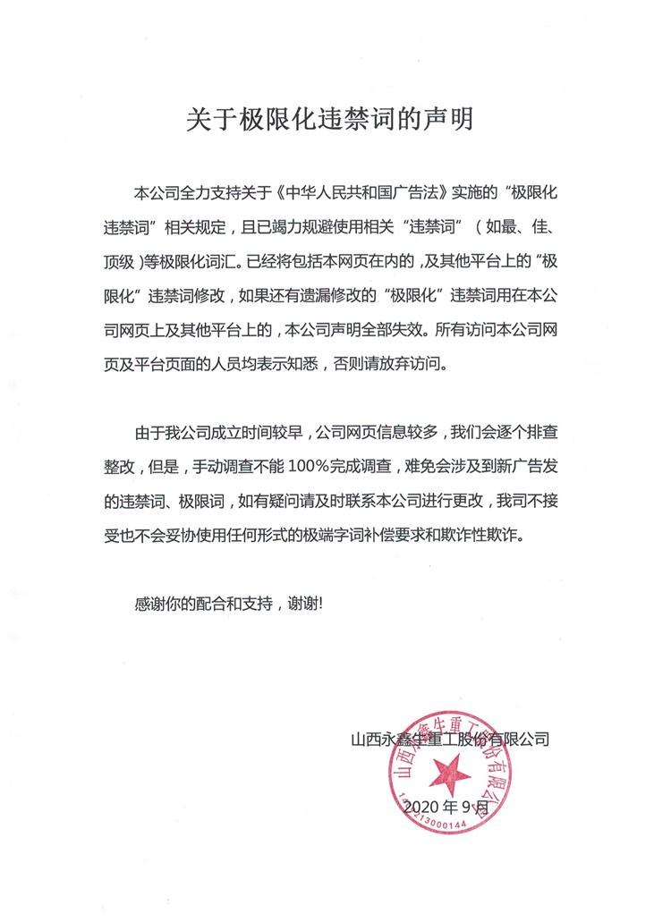 關于極限化違禁詞的聲明 - 山西永鑫生重工股份有限公司
